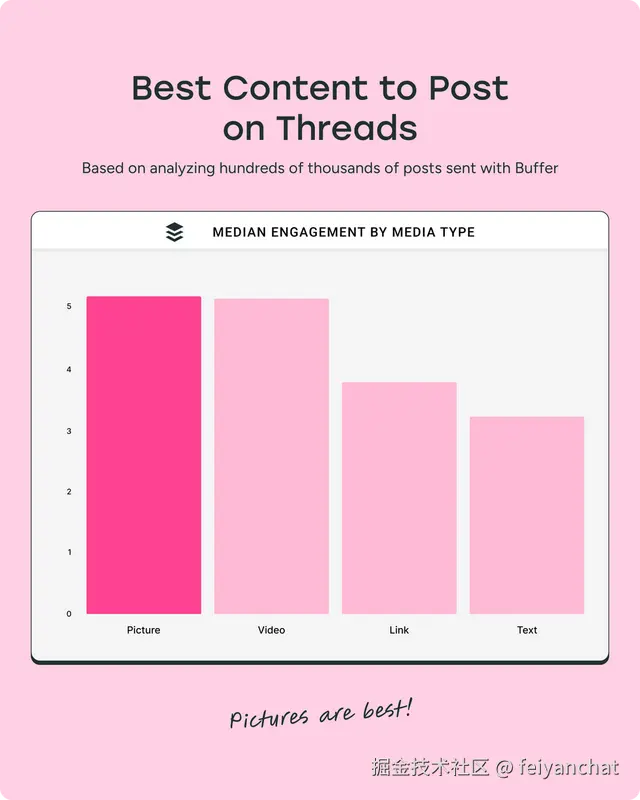 Threads 以“文字对话”为主打,但数据显示:带图片的帖子互动最佳。