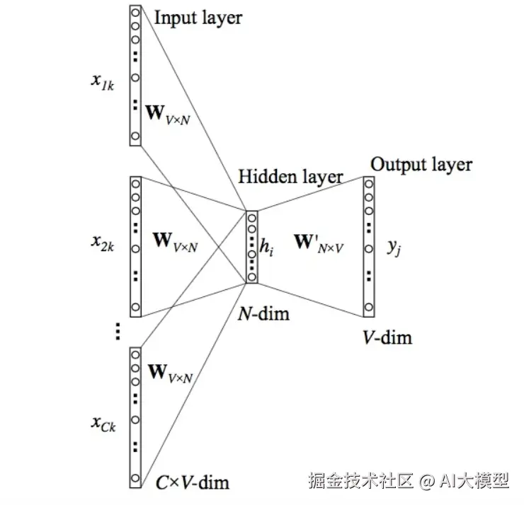 例如,「在CBOW(连续词袋)中,word2vec网络被训练成在给定一个单词的相邻词作为输入时预测该单词」。其直观理解是,你可以根据该单词周围的单词推断出该单词的嵌入。除了 CBOW 之外,另一种变体是 Skipgram,其工作原理完全相反:它旨在通过给定特定单词作为输入来预测其邻近单词。
