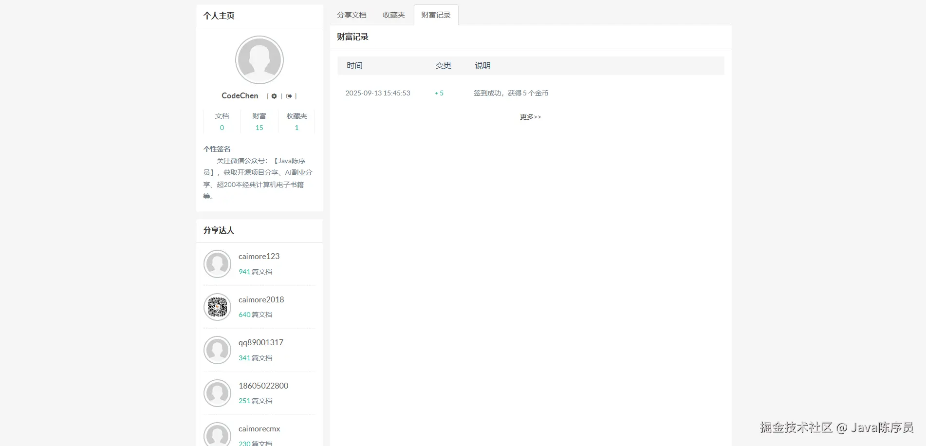 - 积分激励机制:用户上传文档获积分奖励,下载部分文档消耗积分,形成 “分享 - 获取” 的良性循环;管理员可手动调整用户积分,支持积分日志追踪