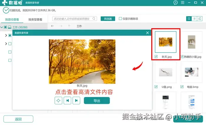 提示:选择恢复【图片】文件,点击可以查看高清预览图。
