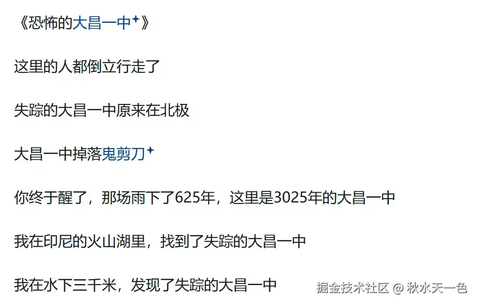 其中“大昌市”就是小说主角杨间所在的城市,而之所以很多相关素材中“大昌一中”在水下,可能是因为在使用AI创作内容的时候,将因修建三峡大坝而沉入水底的巫山县大昌古镇作为资料背景了。