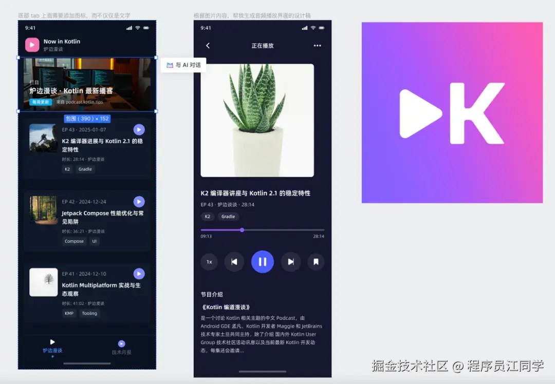 - Kotlin 炉边漫谈播客:内容来源于podcast.kotlin.tips,是一个以 Kotlin 为主题的中文播客节目。