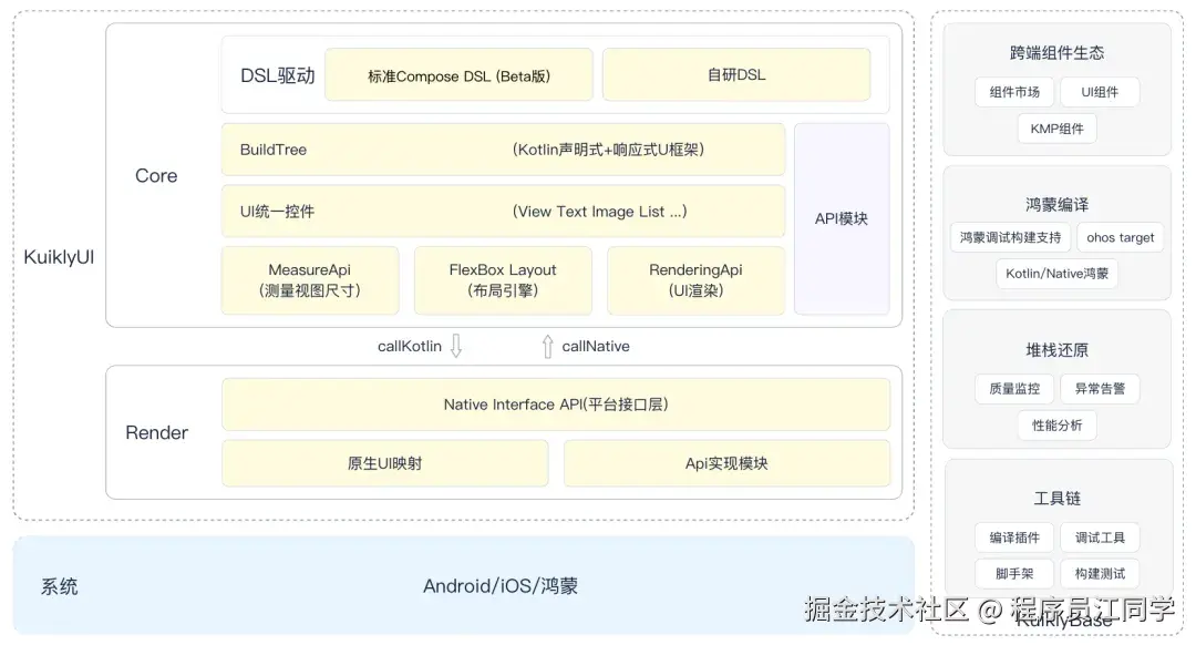 - KMP特性与优劣:KMP以“一码多端”为特色,通过直接编译Kotlin源码到目标平台代码运行。优势在于跨语言调用性能折损小,执行性能接近原生;限制是因早期库设计未考虑跨平台,导致Android代码直接跨平台编译需大量改造。