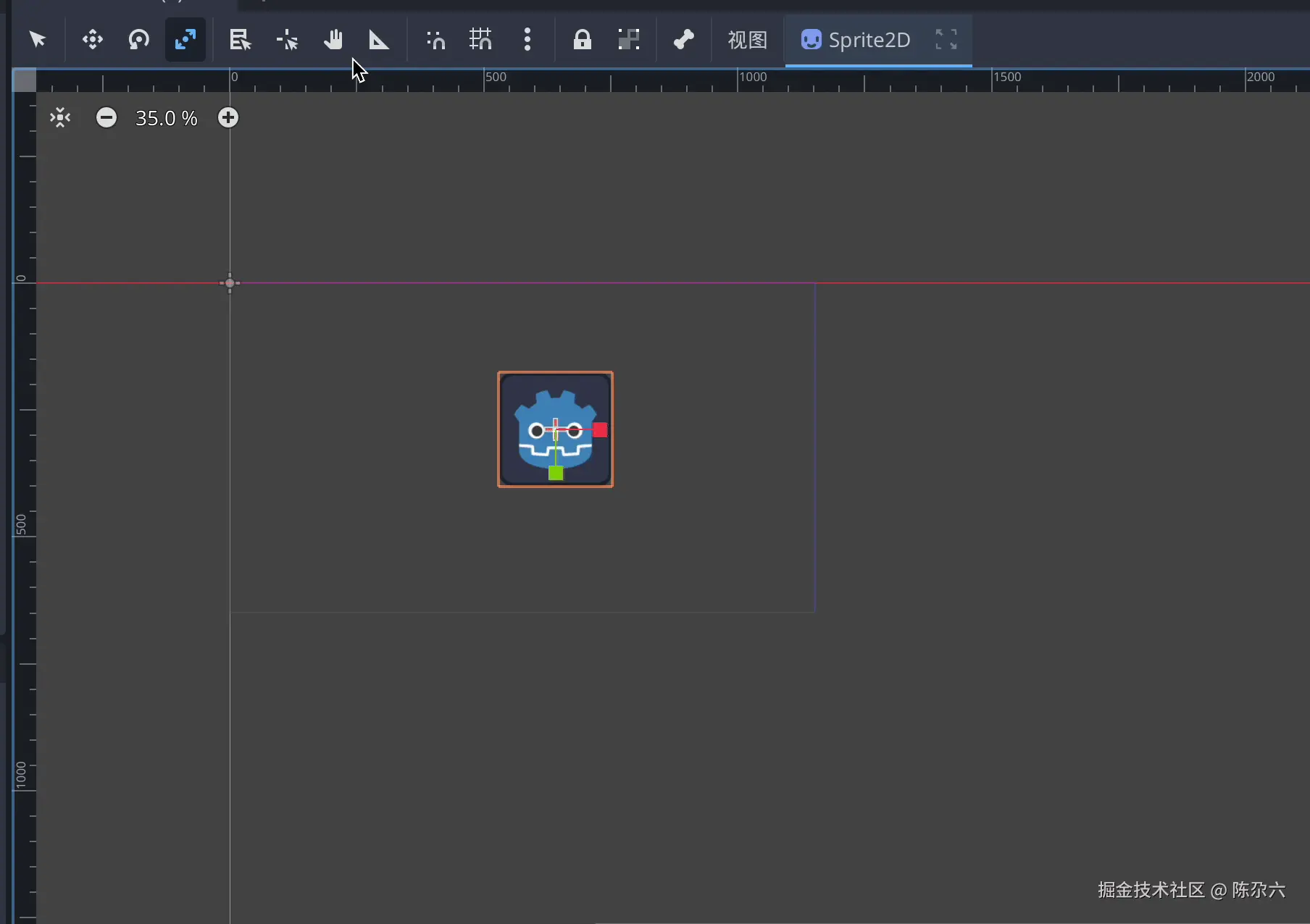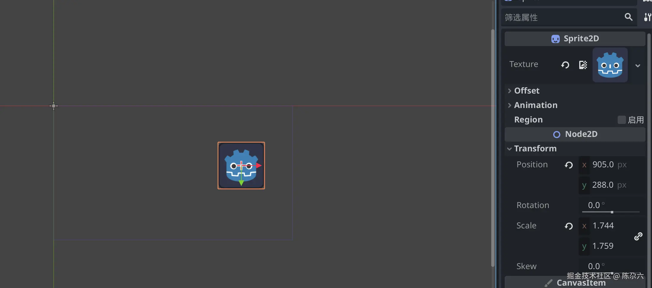 当我们选中一个 Godot 机器人节点(例如 Node2D 或继承它的节点)时:
