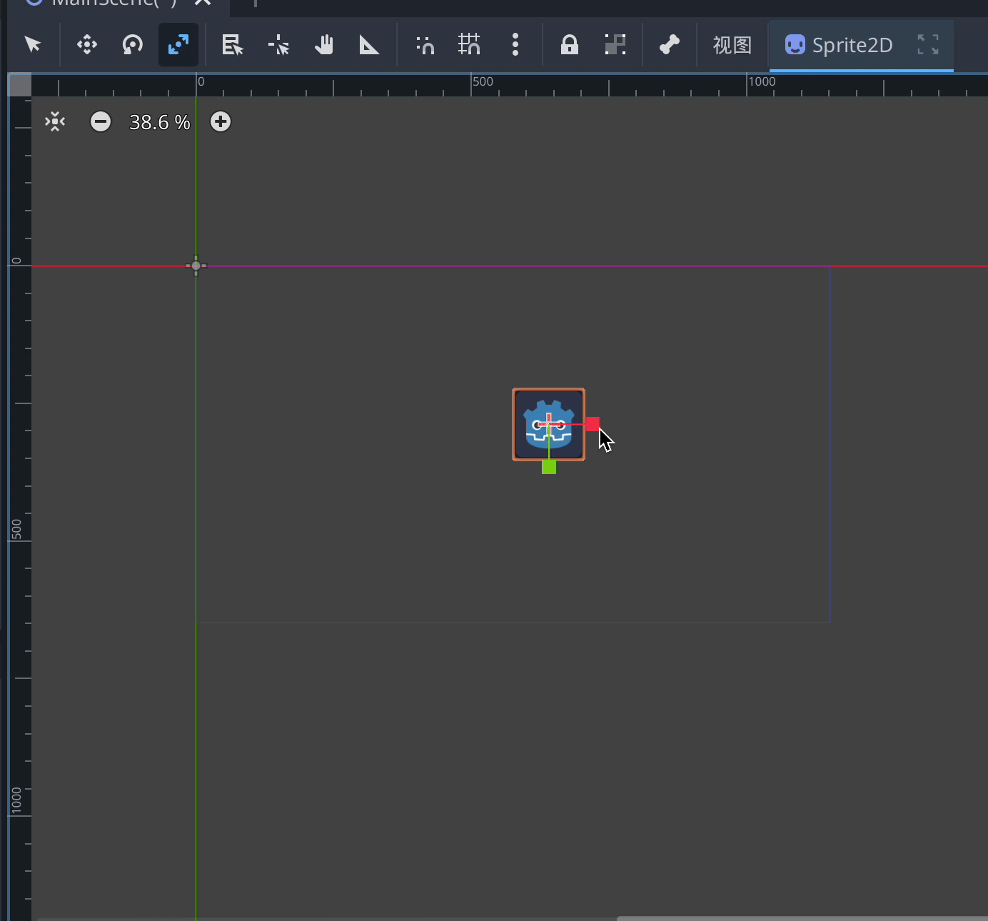 进入后,会出现红(X 轴)与绿(Y 轴)两个方向手柄。