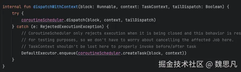 回到 4 中最开始 intercepted() 后返回了一个可 dispatched 的协程 DispatchedContinuation