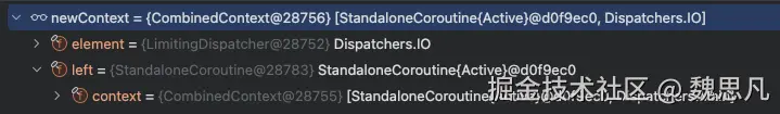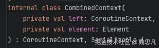 left、当前元素element和ContinuationInterceptor元素组合成嵌套的CombinedContext,确保ContinuationInterceptor元素位于最外层。