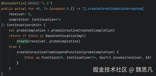 这里需要分成三步分析,先看 createCoroutineUnintercepted
