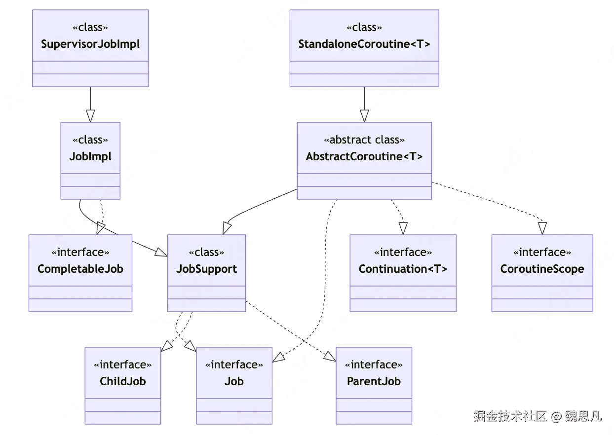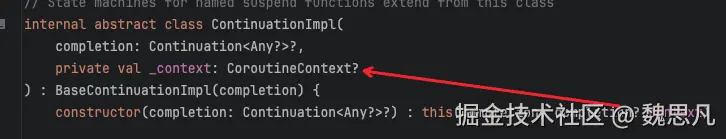 每一个 suspend 修饰的方法都隐含持有一个隐藏参数 Continuation,即 上/父层 协程。