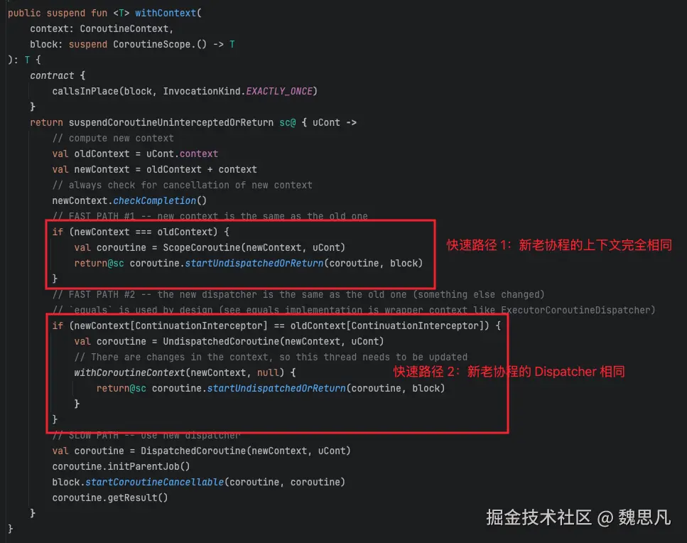 removed是EmptyCoroutineContext,说明累积上下文acc中只有与当前元素element相同Key的元素,移除后只剩下空上下文,此时直接返回当前元素element。 - 移除后不为空上下文:继续处理,确保