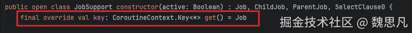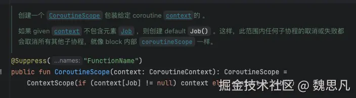 举例为以 CoroutineScope(Dispatchers.Main) 举例,所以由于传入的 context 为 Dispatchers.Main 为新创建的调度器,所以内部没有 Job 元素,会走到 else 分支和一个 Job 对象做运算。