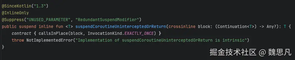 猜测 suspendCoroutineUninterceptedOrReturn 的意义就是在 kt 层显式增加父协程的引用 uCont,提醒编译器这里需要编译魔法。