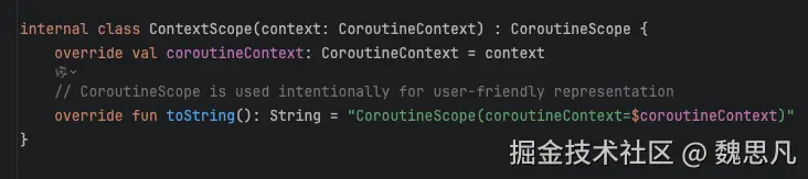 以 CoroutineScope(Dispatchers.Main) 举例创建协程,coroutineContext 即当前 Scope 的上下文,而这个上下文是在跟随创建 Scope 的时候创建的。