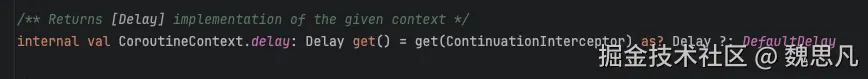 执行 cont.context.delay 的 scheduleResumeAfterDelay 方法,cont 为包裹了父协程的 cancellable 协程,context 中即启动父协程的上下文,delay get 到的即 HandlerContext——Dispatchers.Main。