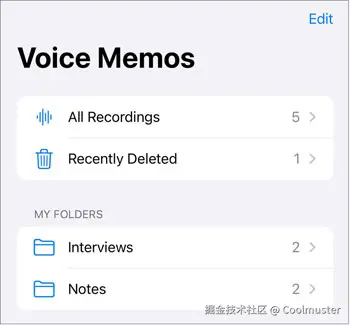 步骤1.点击“编辑”,然后选择要删除的语音备忘录。