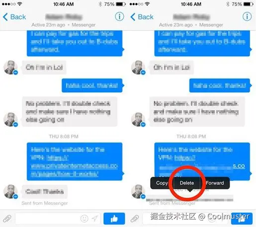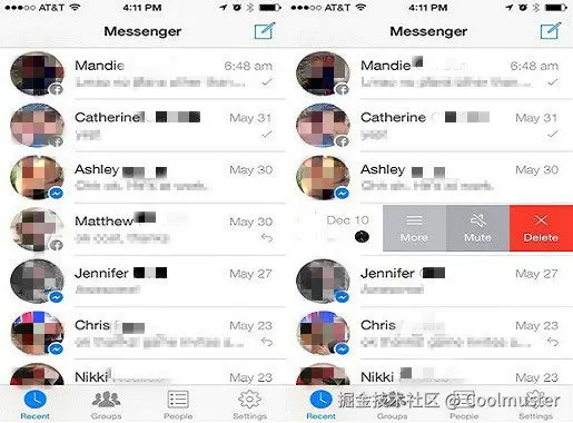 步骤 1. 向左滑动任意消息即可将其删除。
