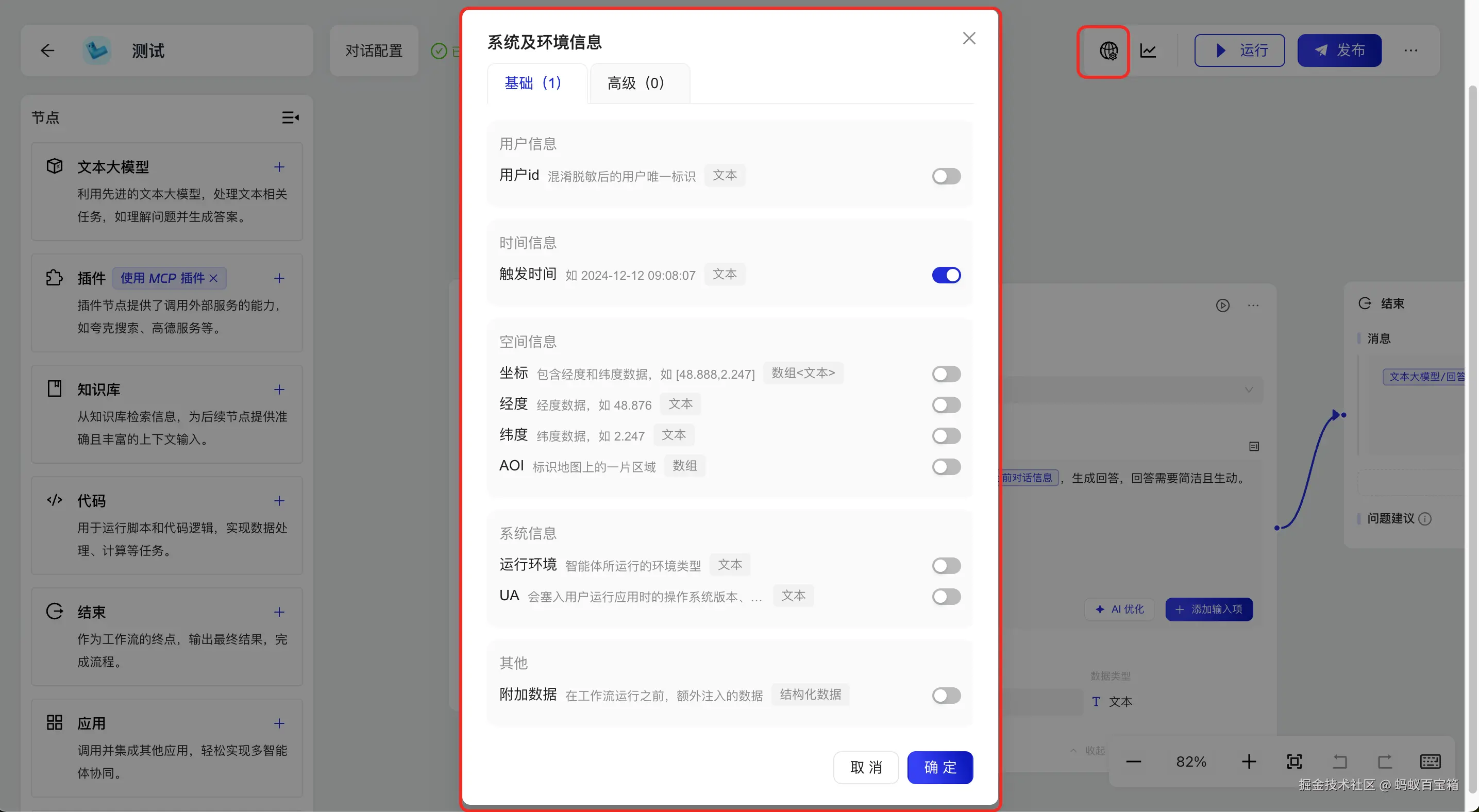 | ext_data.query(仅部分节点有) | JSON string | 用户输入查询内容 | {"type":"text","value":"你好"} |