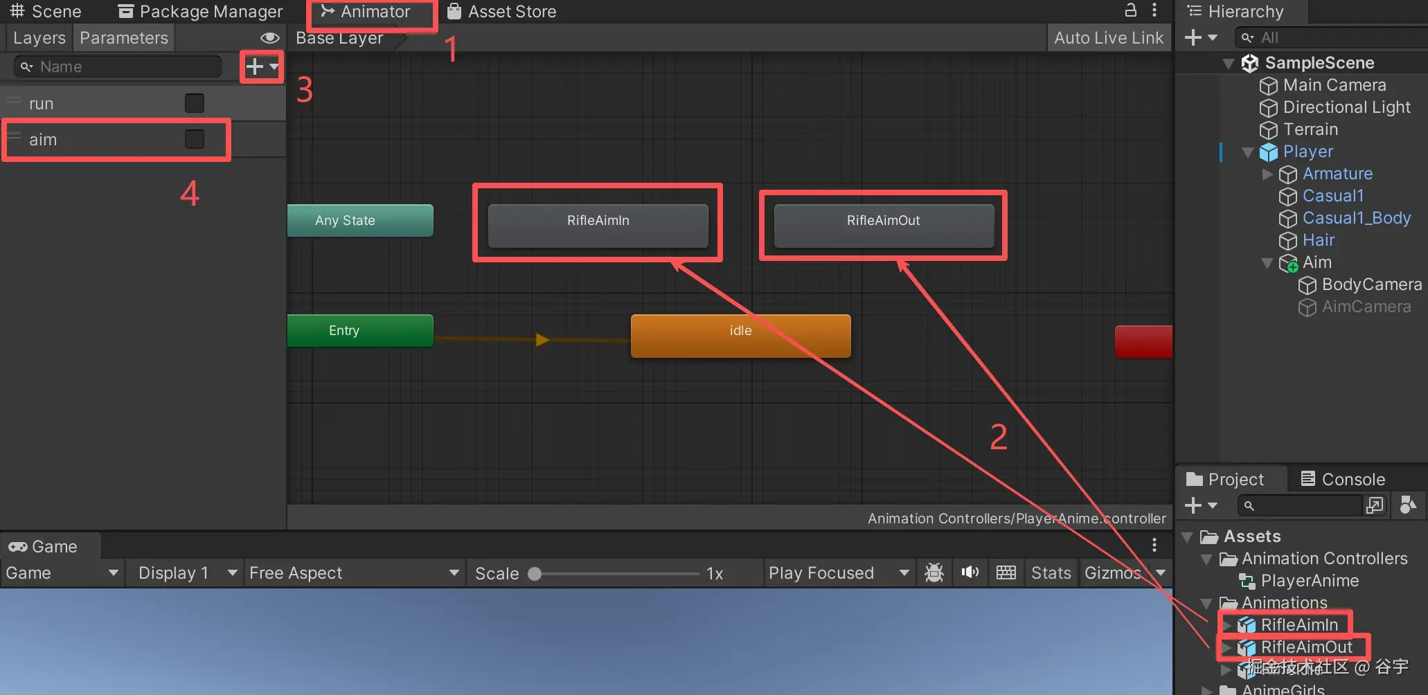 (1)首篇文章:如何实现举枪的动画和代码,还有镜头的缩放设置。
