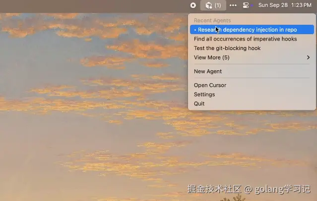 新版本可以直接从菜单栏快速查看 Cursor Agent 的运行状态,随时掌握后台任务的进展与健康情况。