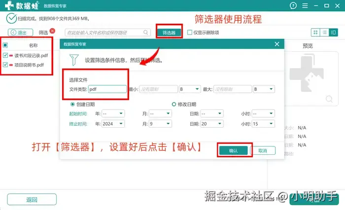 - 文件搜索辅助工具: 在扫描出大量文件后,无法一时找到目标文件,都可以选择里面的辅助工具进行进一步的文件定位;