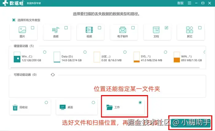 - 数据扫描能力强大: 该软件支持几十种文件类型的恢复,而且扫描范围从电脑内部再到外部存储设备;