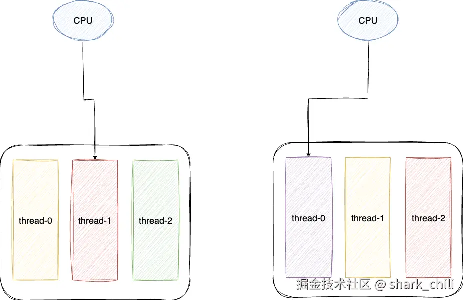 在多核CPU系统中,每个CPU核心通常维护自己的就绪队列来存放待执行的线程,这样可以减少多核间的竞争,提高调度效率。当线程需要被调度执行时,它会被放入就绪队列中等待CPU分配执行时间。线程的执行流程如下: