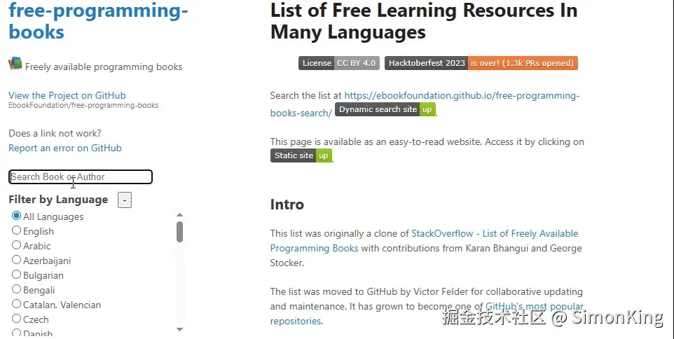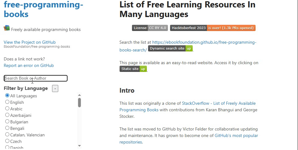 free-programming-books 是一个由全球开发者社区共同维护的巨型资源库,专门收集和分享免费的编程相关教育资源。它的核心使命是无论其经济状况如何,都让编程知识变得对所有人开放和可及。