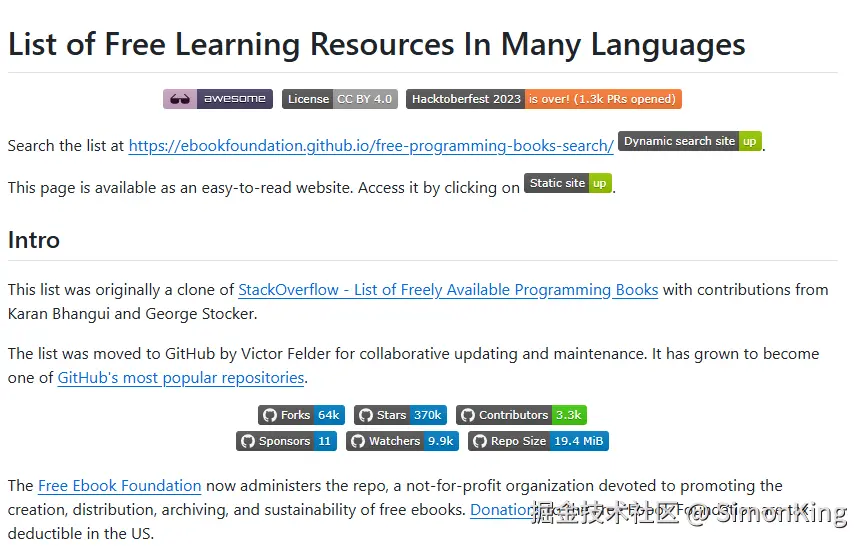 今天,要向大家介绍一个在GitHub上被奉为“程序员宝藏”的神奇项目——free-programming-books。它不是一个简单的书单,而是一个由全球开发者共同维护的、涵盖几乎所有编程语言和技术的知识宇宙。接下来,就让我们一起揭开它的神秘面纱,看看这个标星超过30万的“开源宝库”如何让你的编程学习之路事半功倍,且不花一分钱。