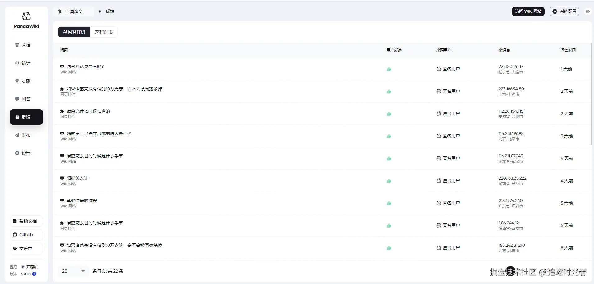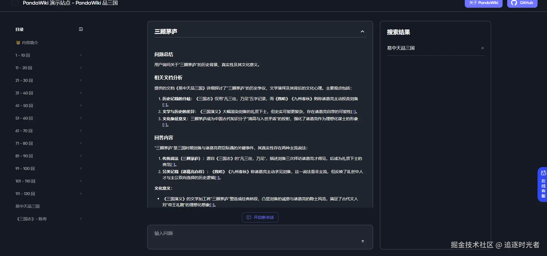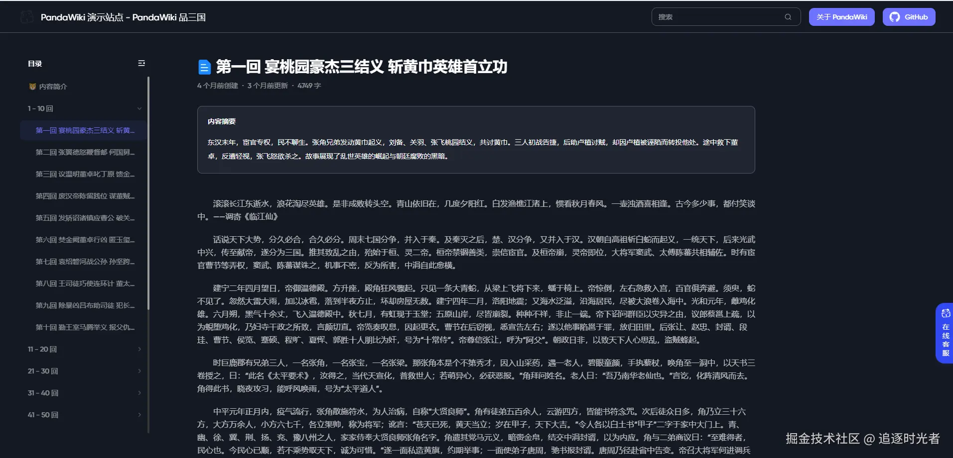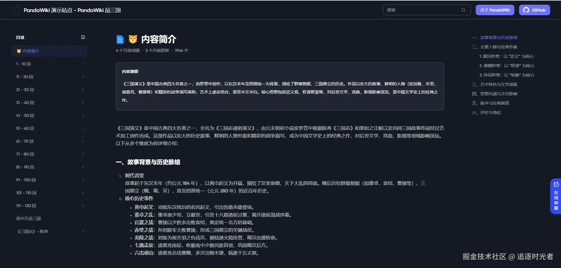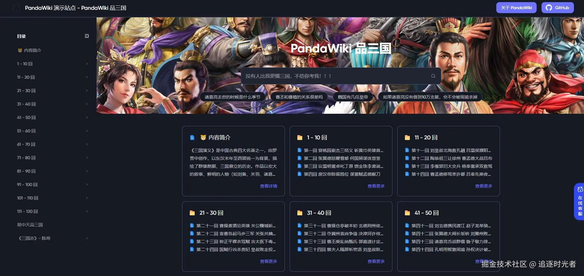 接下来我们一起来看看使用 PandaWiki 快速构建的三国演义知识库: