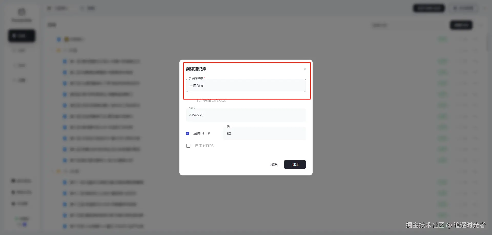 上面的配置都完成后,接下来我们先创建一个名为:三国演义的知识库。