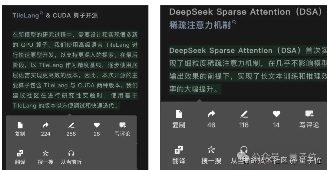 开源 TileLang 版本算子,其受关注程度甚至超过新稀疏注意力机制 DSA,从画线转发的数量就可以看出来。