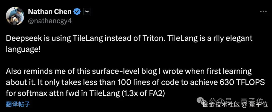 海外社区也注意到 DeepSeek 使用了它而不是 OpenAI 开发的 Triton 语言。