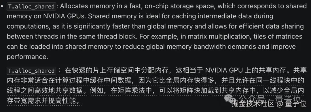 在 TileLang 的文档中也有相关的技术介绍,在计算过程中缓存中间数据,比全局内存快得多。