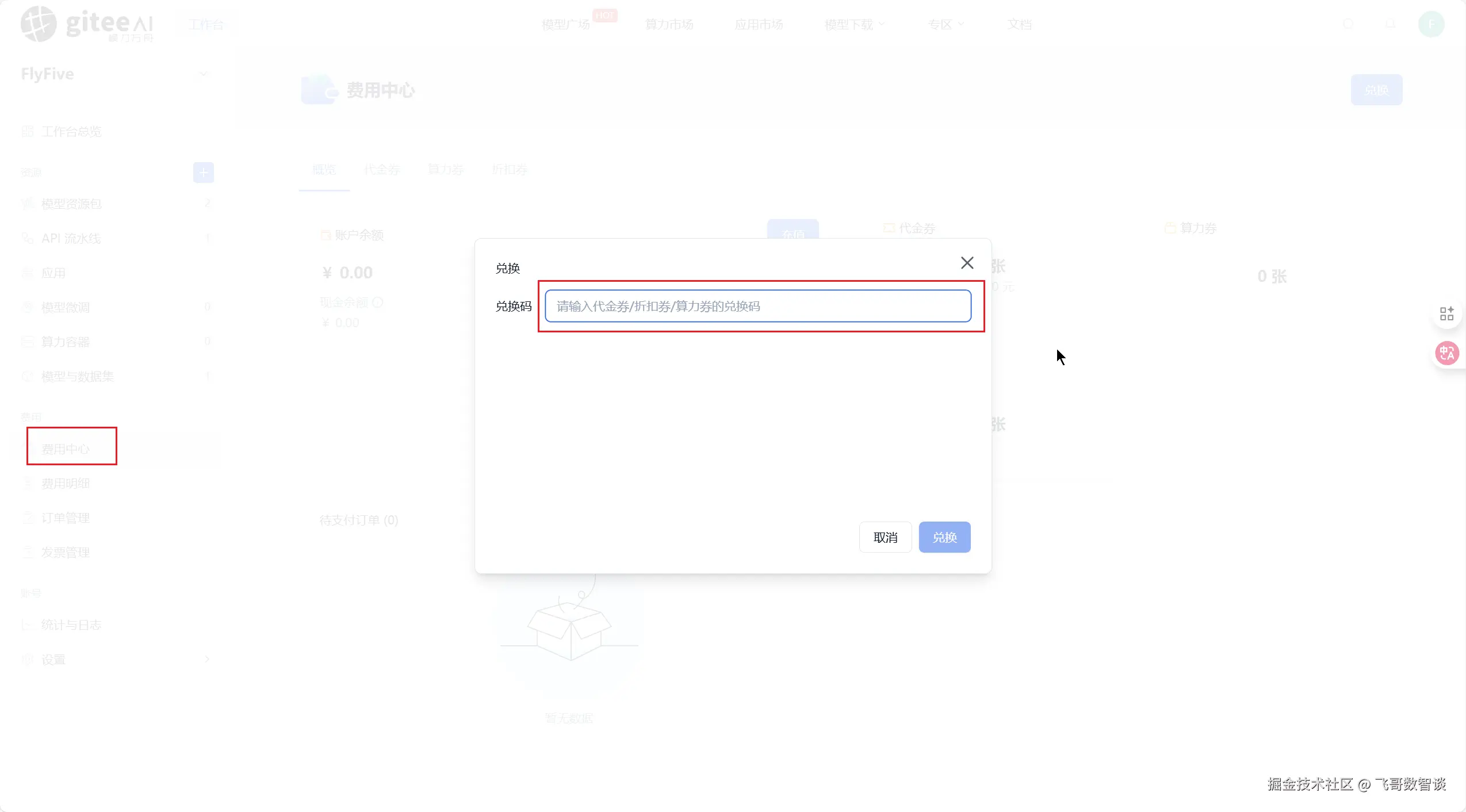 拿到码后去模力方舟“工作台”-“费用中心”-“兑换”即可获得 100元代金券。