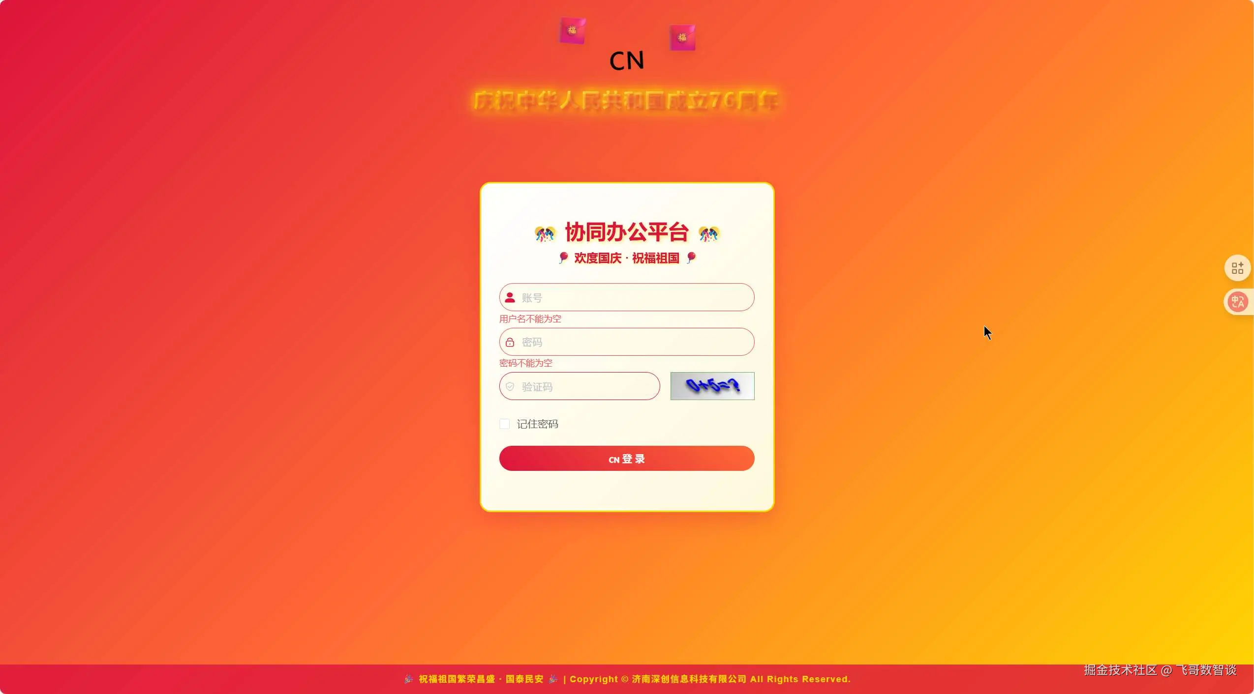 明天就国庆节了,给协同平台的登录页面换一个节日氛围的风格。