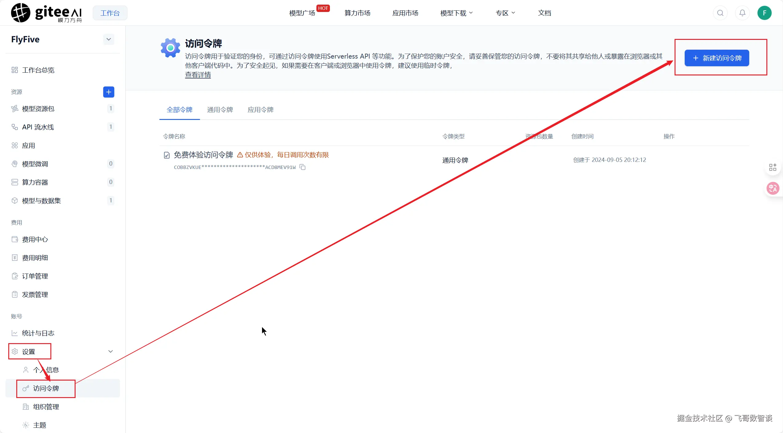 2、进入模力方舟“工作台”-“设置”-“访问令牌” 界面。