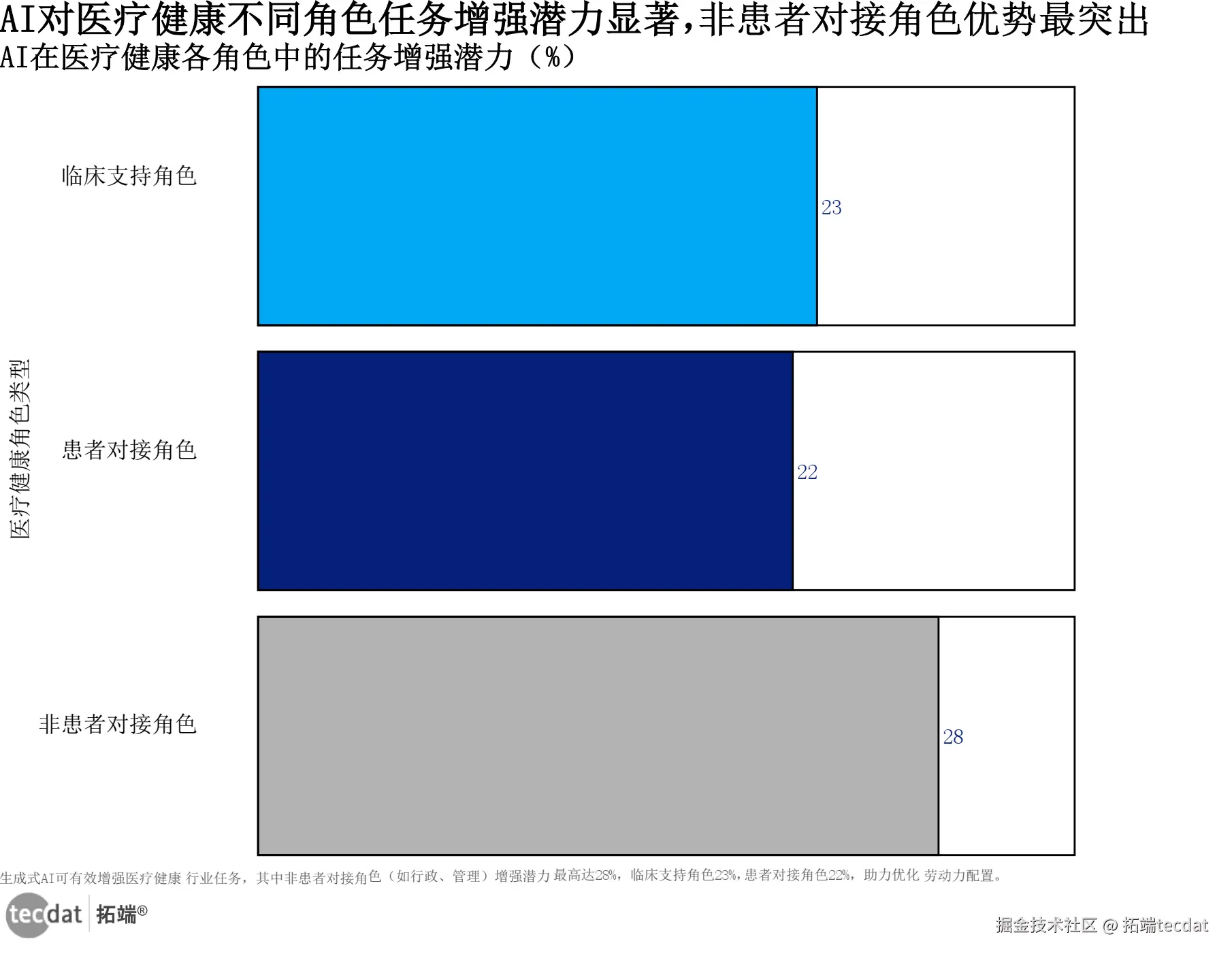 AI在医疗健康各角色增强潜力横向比例条形图图表数据及PDF模板已分享到会员群