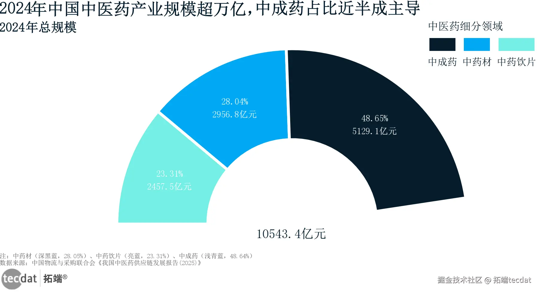 2024年中国中医药产业结构(指定RGB颜色)闭合圆环图图表数据及PDF模板已分享到会员群