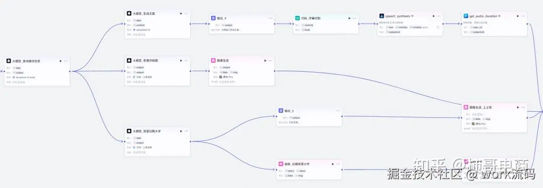 整个视频都不需要真人出镜,全是用素材进行合成,并不需要复杂的剪辑技巧,我们使用coze工作流就可以一键生成。
