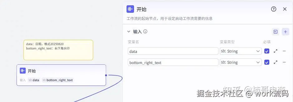 首先配置一个 日期输入变量,用户只需要输入日期,就能驱动后面的整个流程