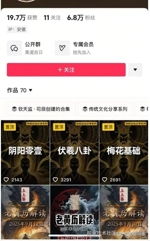 比如像老黄历解读,一直以来就是一个刚需赛道,受众群体也广。