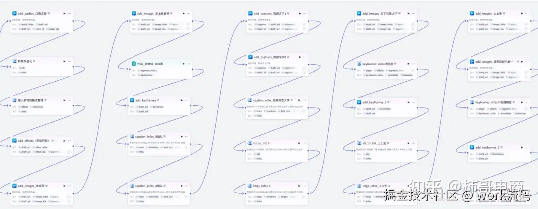 音频处理好了,就差画面,整体节点还是比较复杂的,将前面内容创作部分生成的素材使用插件一一对应插入,完成图片和特效的整合