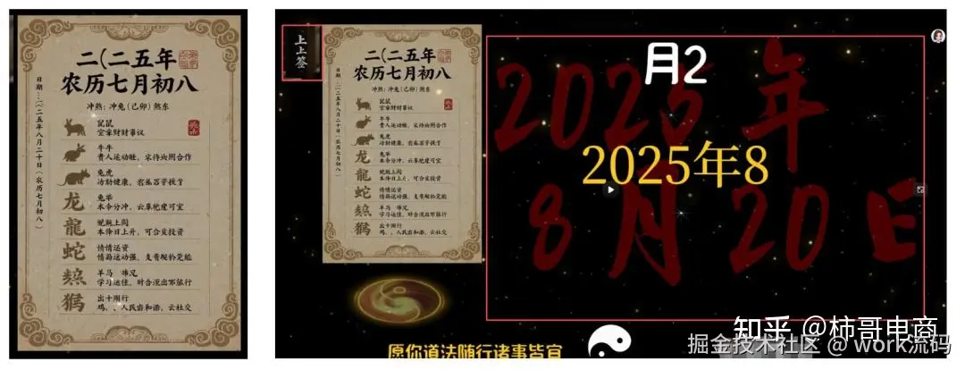 图片生成部分主要需要生成两个图片,一个是老黄历,一个是上上签和视频背景的日期大字