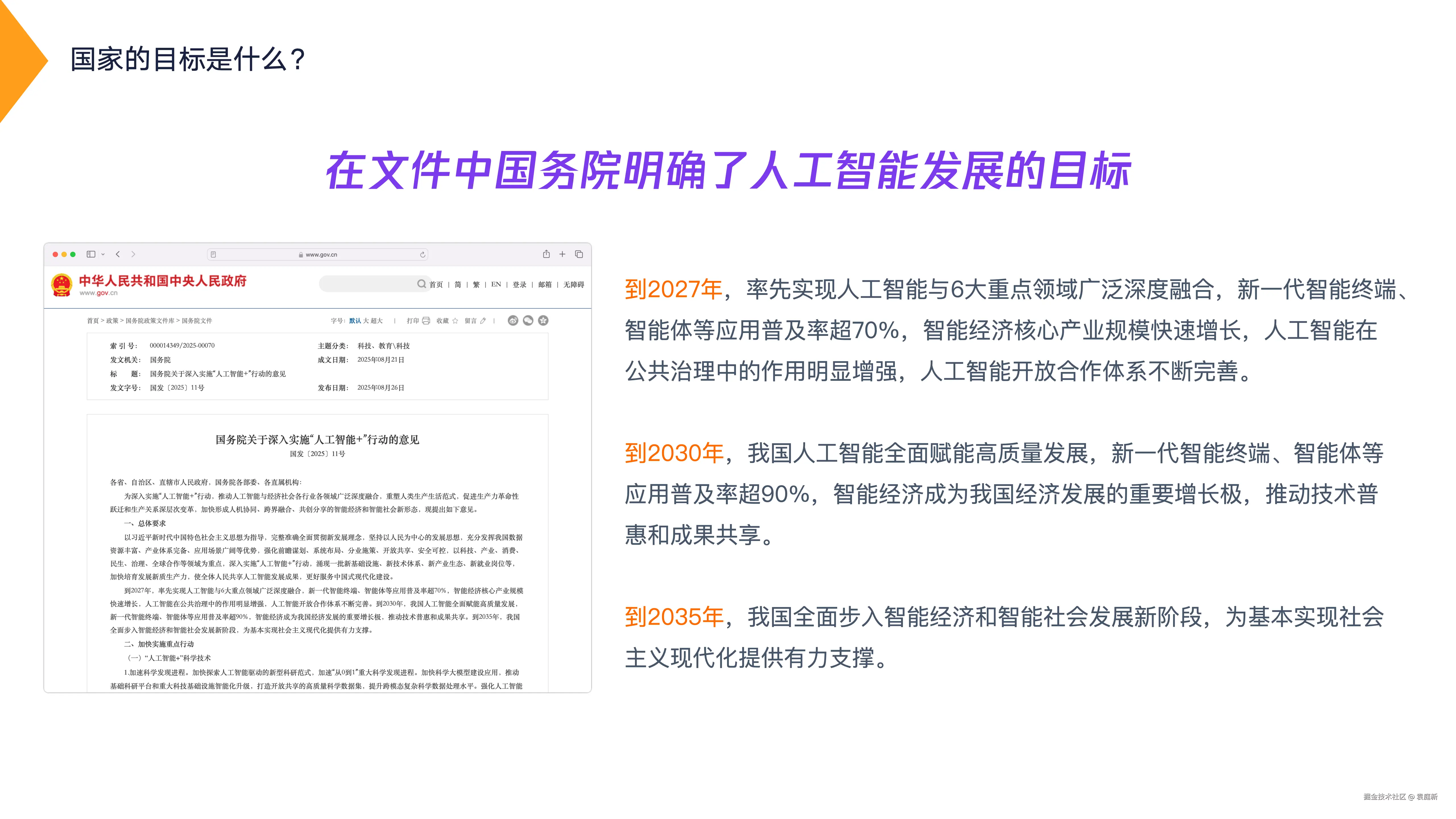 2025年08月26日,国务院发布了《国务院关于深入实施“人工智能+”行动的意见》文件。从过往实践来看,国家专门为某项技术发布行动纲领的情况并不常见。这标志着国家层面对AI战略的全面升级,更预示着一场十年难遇的重大发展机遇已悄然到来。