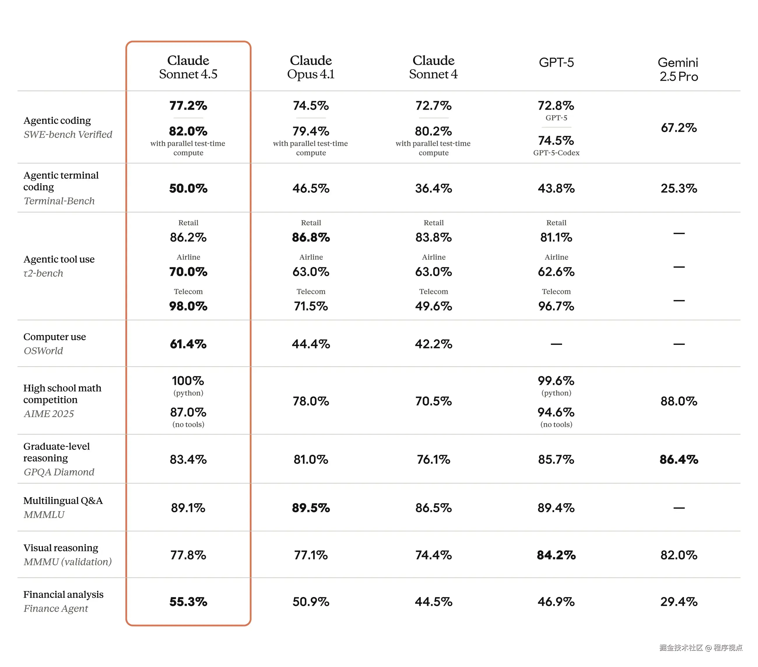 Claude Sonnet 4.5在多项权威测试中展现出压倒性优势。