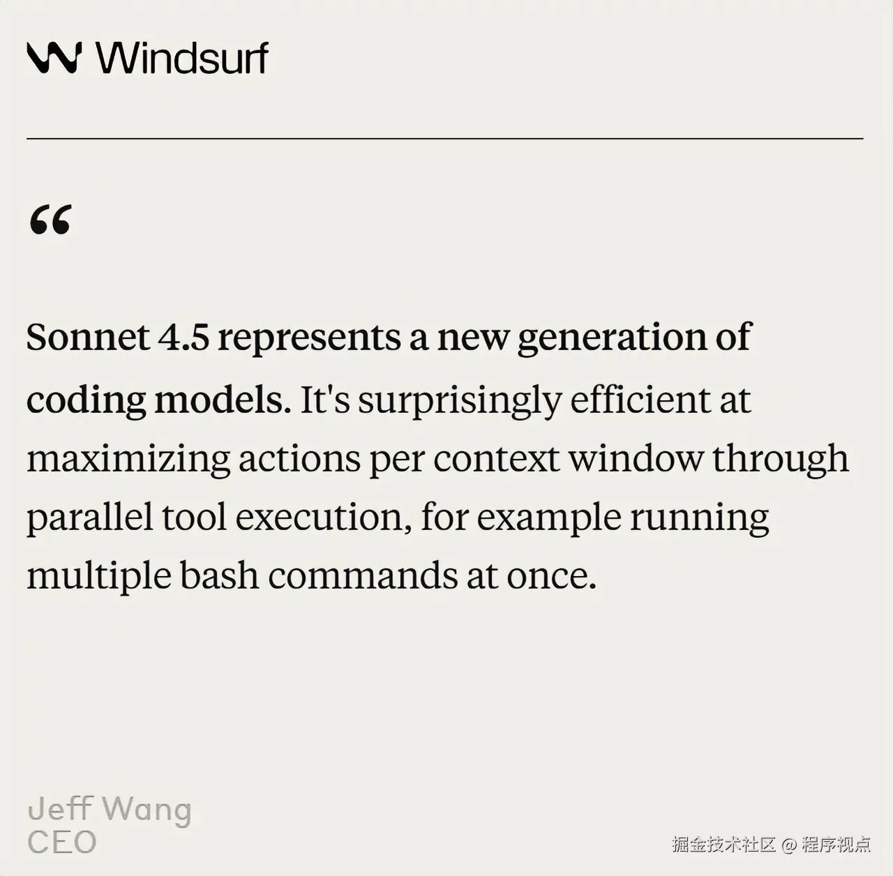 Windsurf CEO Jeff Wang则认为其定义了"新一代编码模型标准"。