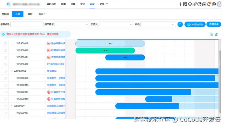 Co-Project平台甘特图管理
