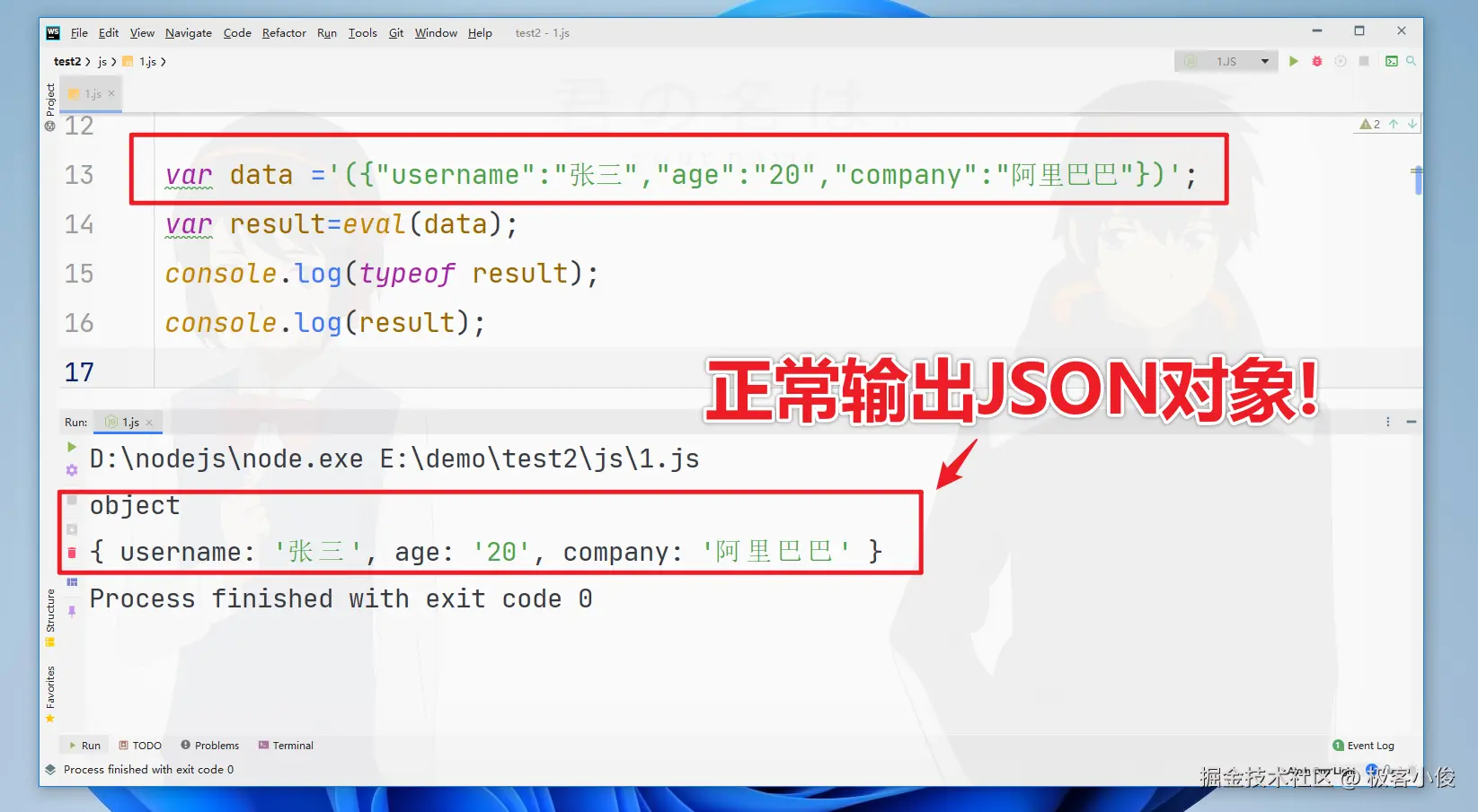 那么就像上面的案例一样我们也可以让它正常执行成为一个JSON对象
