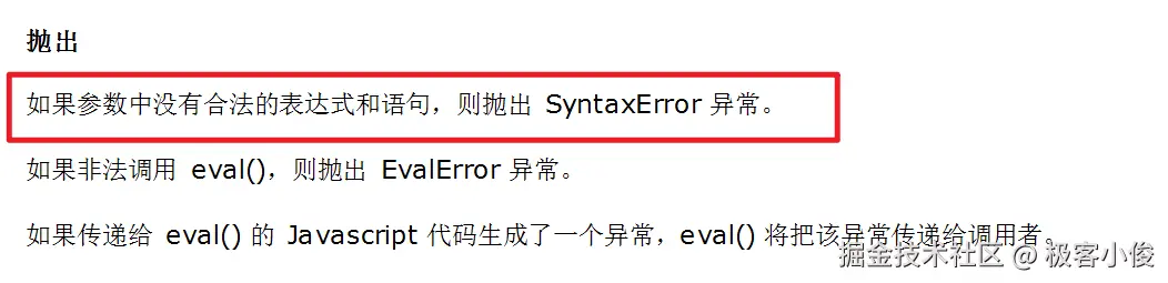 那是因为如果字符串中的语法不正确,eval() 函数会抛出语法错误