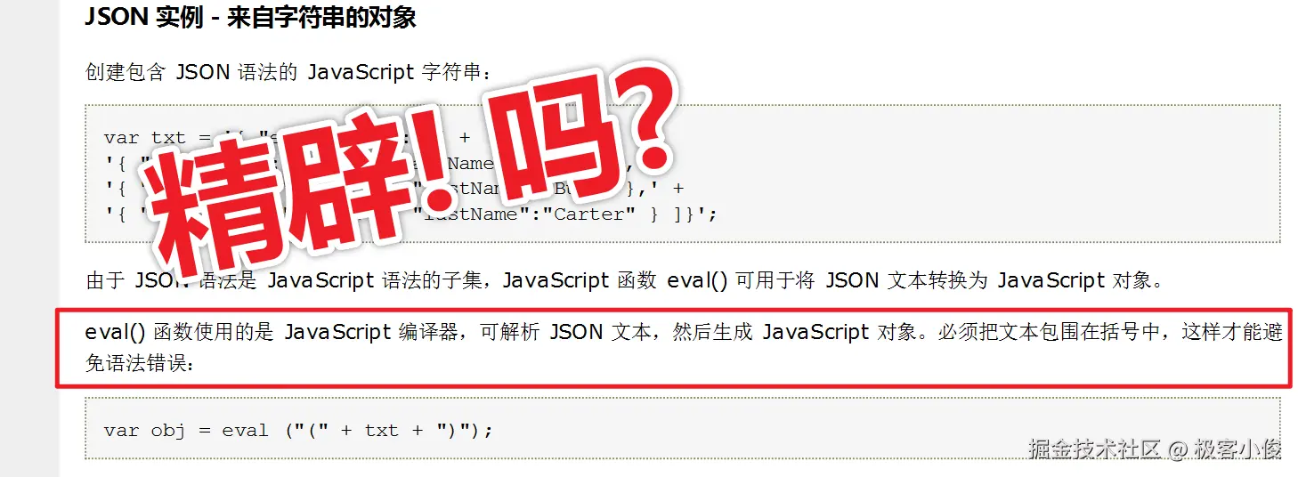 也就是为什么还要加()变成 eval('('+变量名+')')呢? 很多新手会在这里犯困惑!